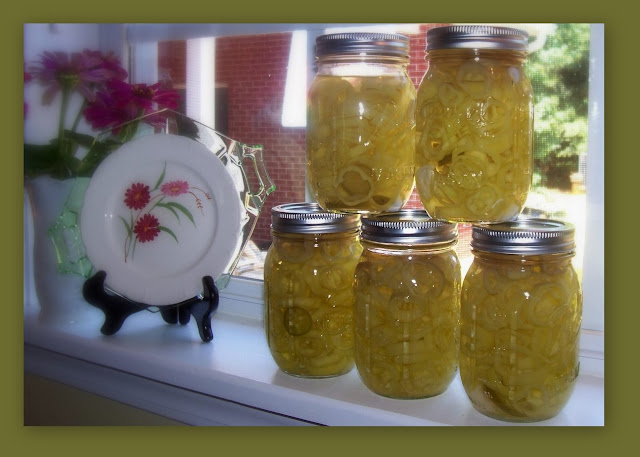 I had set the jars of banana peppers in the window to enjoy the beauty of them.