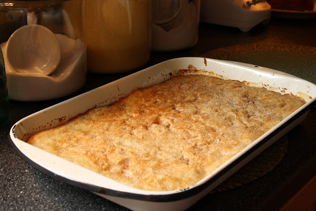 I love your pretty enamel pan! The cobbler looks great and I will try the vanilla sugar:@)
