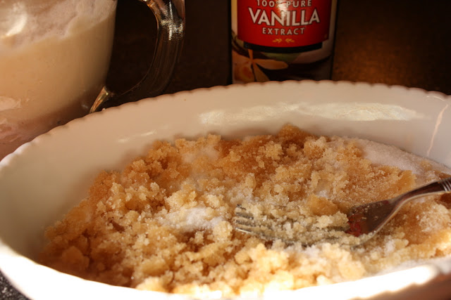 Sugar and vanilla blended with a fork and placed on top,
